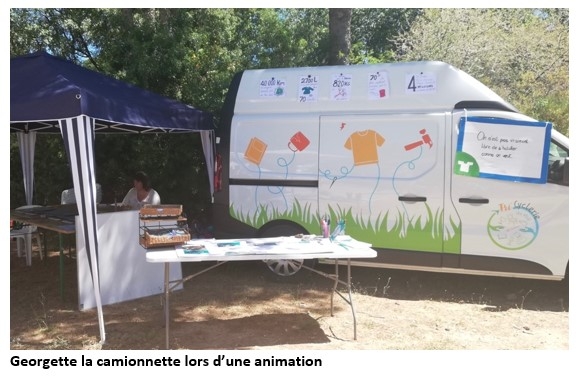 Qu’à cela ne tienne, exit la ressourcerie en dur ! En tenant la Région informée, l’association se recentre sur ses actions itinérantes. Elle organise un concours sur Facebook pour baptiser la camionnette – ce sera Georgette – qui est décorée pour marquer les valeurs défendues. « Georgette est devenue unique », rigole Isabelle.