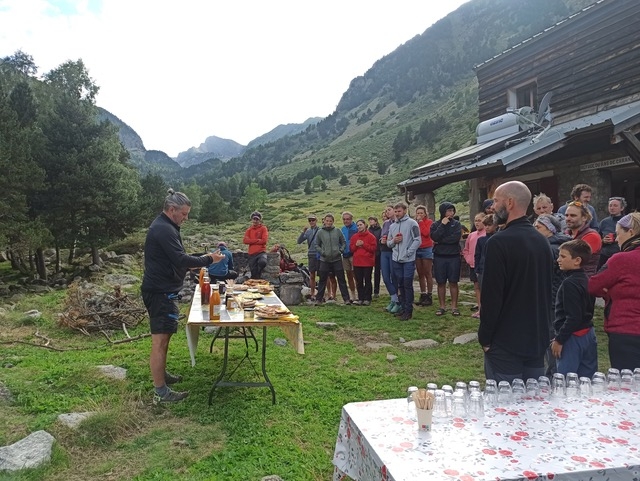 La soirée se déroule en deux temps. Avant le repas, une invitation dégustative valorise les produits de la vallée et les liens entre le refuge et son territoire. Ce moment convivial ouvre aussi l’échange autour des usages de la montagne, des motivations des visiteurs et des enjeux écologiques propres aux espaces d’altitude.